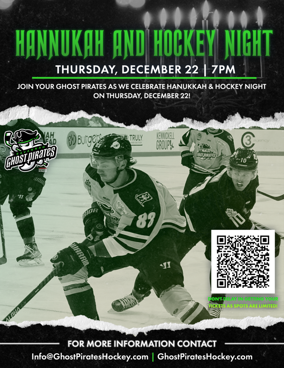 Join Chabad at Enmarket Arena for Hanukkah and Hockey Night Thursday, December 22nd - 7 PM Join your Ghost Pirates as we celebrate Hanukkah and Hockey Nigh!